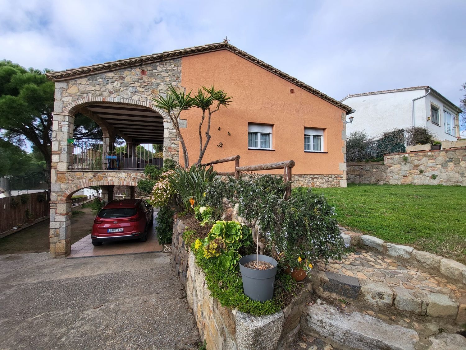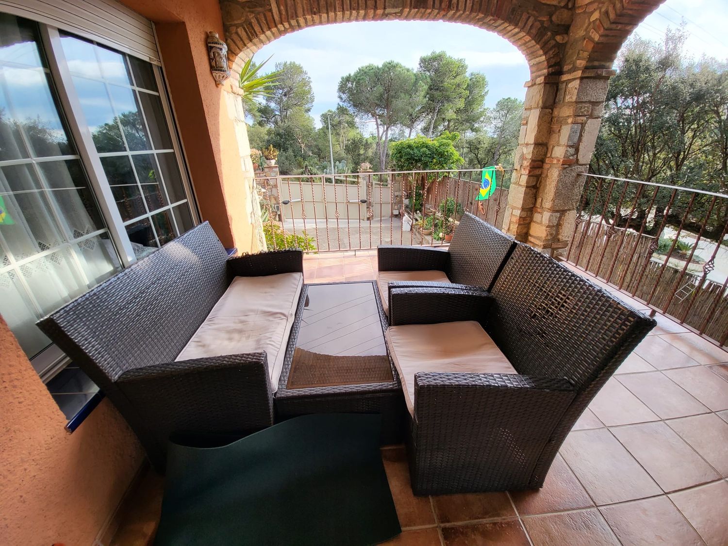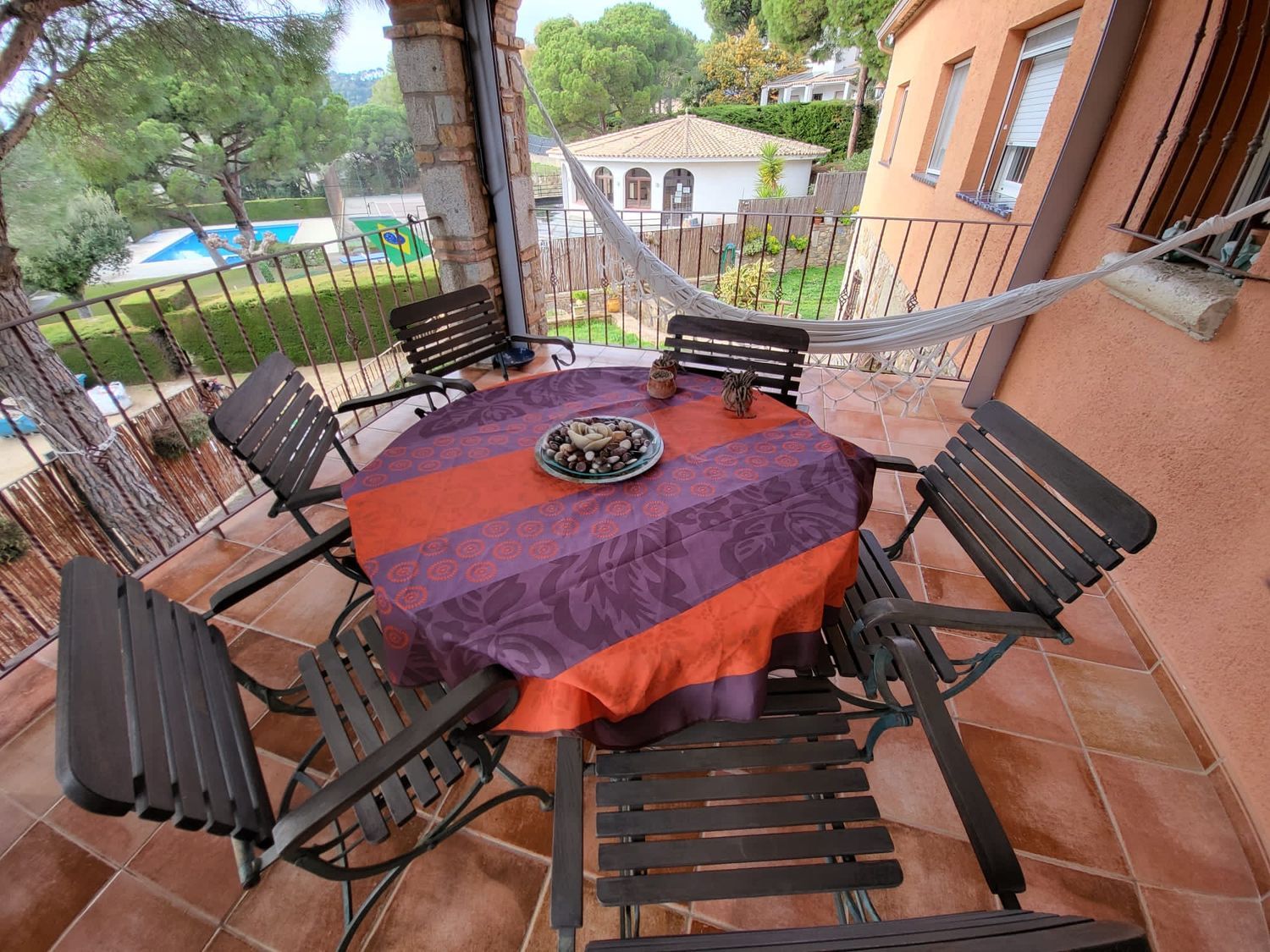 El salón-comedor conecta con un amplio porche cubierto, perfecto para disfrutar del clima mediterráneo. La parcela ofrece privacidad y tranquilidad, convirtiéndola en una excelente opción como chalet en Costa Brava, tanto como residencia habitual como segunda residencia.