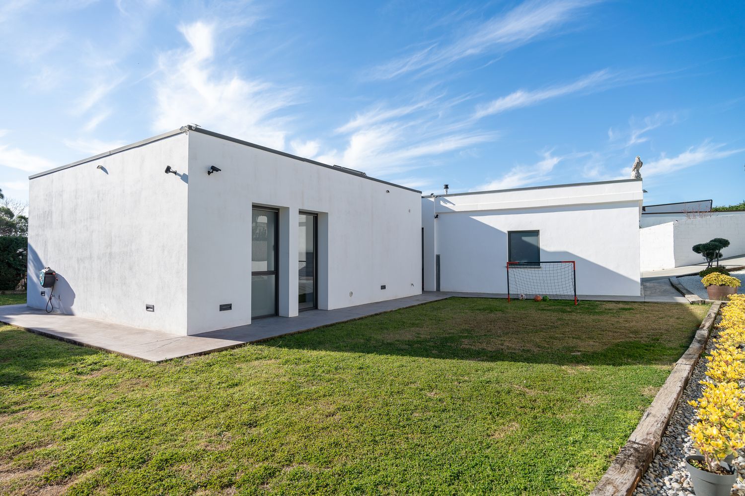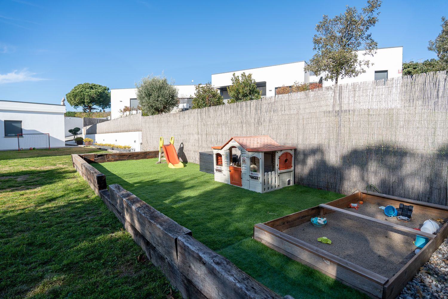 El salón-sala de estar es un espacio luminoso que invita a la relajación, con vistas impresionantes al jardín. La cocina, completamente equipada, es un sueño para cualquier amante de la gastronomía. Además, la casa dispone de un vestidor, cuarto de juegos y una habitación de invitados, asegurando espacio para toda la familia y amigos. La preinstalación para piscina y las amplias zonas ajardinadas prometen horas de diversión y descanso.