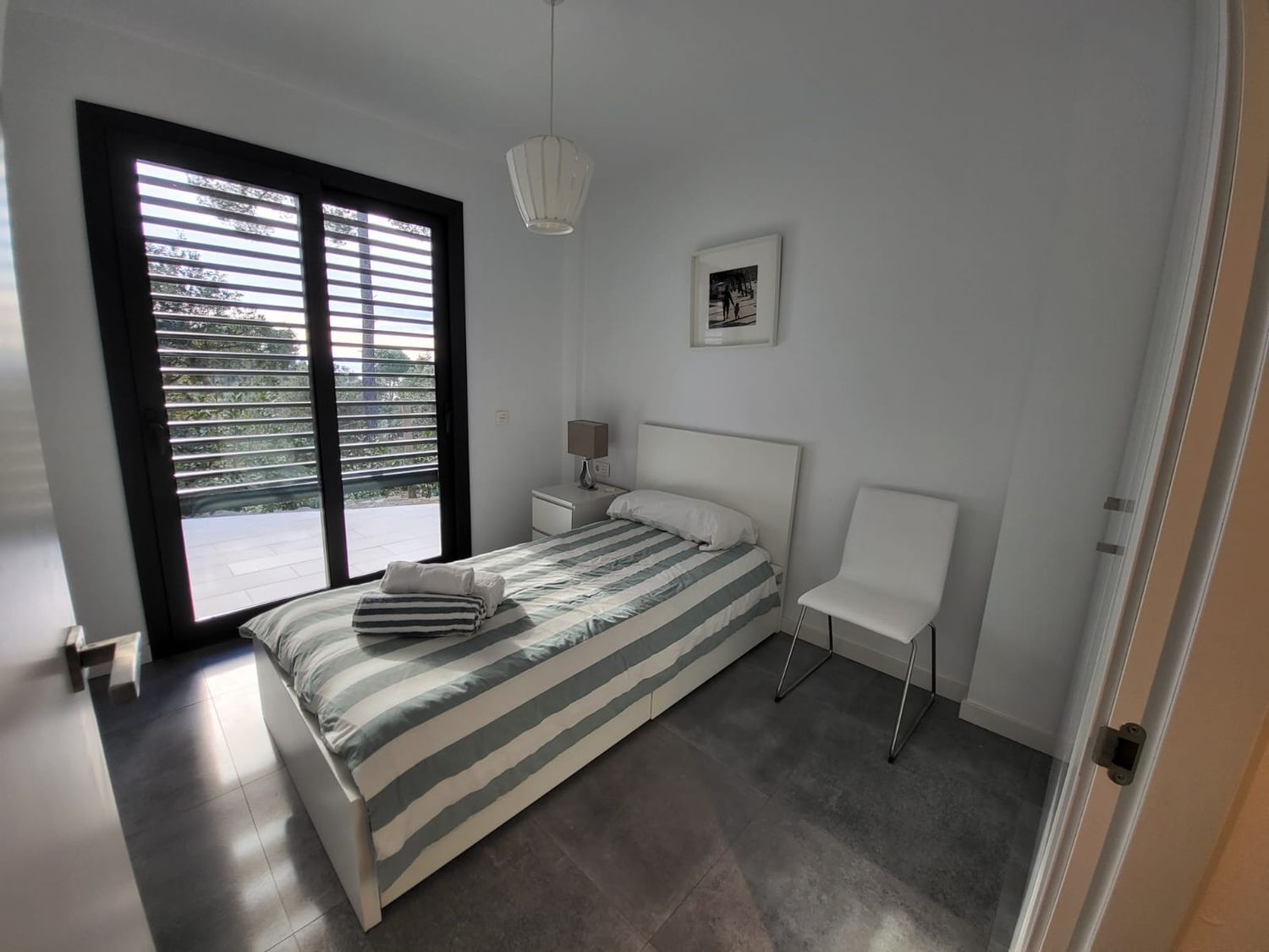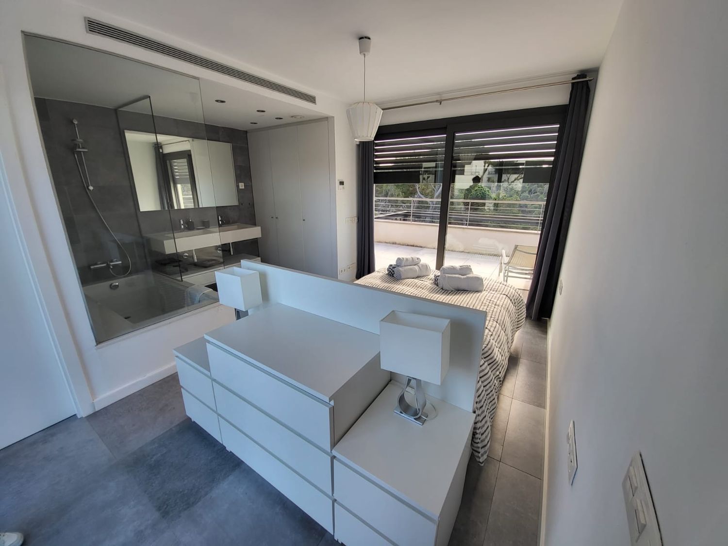 La planta inferior alberga tres habitaciones dobles y un baño completo compartido, ideal para familia o invitados. La suite principal, ubicada en la planta superior, ofrece acceso a dos terrazas privadas, proporcionando un espacio íntimo y relajante. Con aire acondicionado reversible, alarma y persianas eléctricas, esta casa garantiza confort y seguridad. Además, dispone de dos plazas de parking, riego automático y paneles solares, subrayando su eficiencia energética.